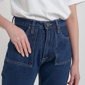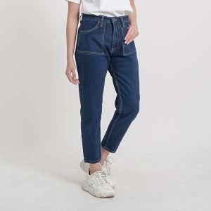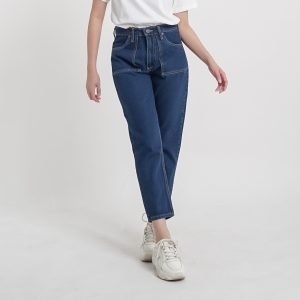 ESROCTE Boyfriend Pocket High Waist Jeans Wanita P24 – Navy Retro