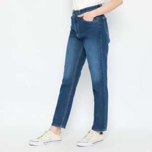 ESROCTE Celana Boyfriend High Waist Jeans Wanita P03 – Navy Spray
