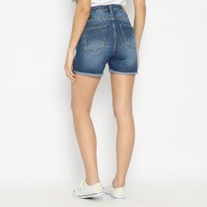 ESROCTE Celana Hot Pants High Waist Jeans Wanita P10 – Navy Spray