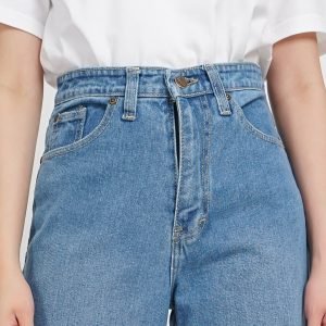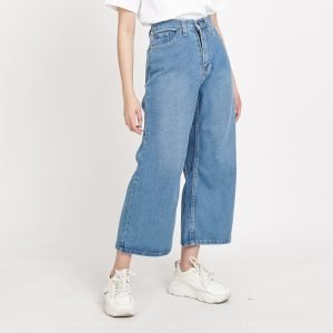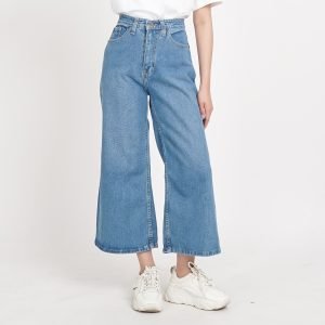ESROCTE Celana Kulot High Waist Jeans Wanita P01 – Biru Muda Scrub