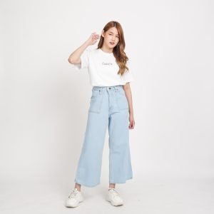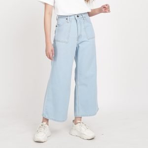 ESROCTE Celana Kulot Pocket High Waist Jeans Wanita P22 – Biru Muda