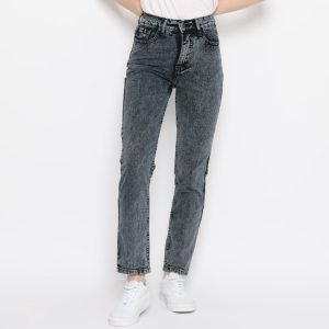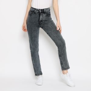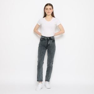 ESROCTE Celana Rubber Boyfriend High Waist Jeans Wanita P42-Black Snow