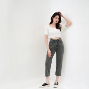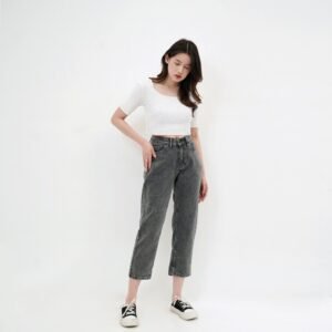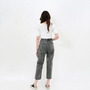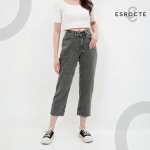 ESROCTE Celana Rubber Boyfriend High Waist Mom Jeans Wanita P43 – Light Grey Snow 26-38