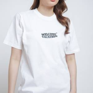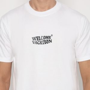 ESROCTE Kaos Reguler Unisex Lengan Pendek Welcome Vacation – 24s Putih Natural S-XL